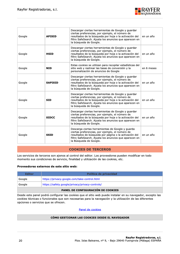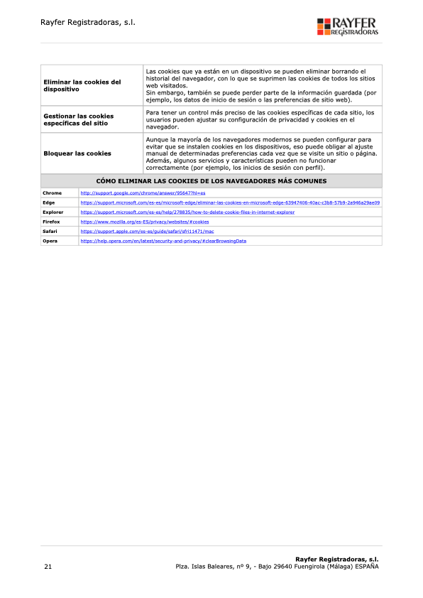 Rayfer Registradoras, s.l..Plza. Islas Baleares, nº 9, Bajo – 29640 Fuengirola (Málaga). E-mail: